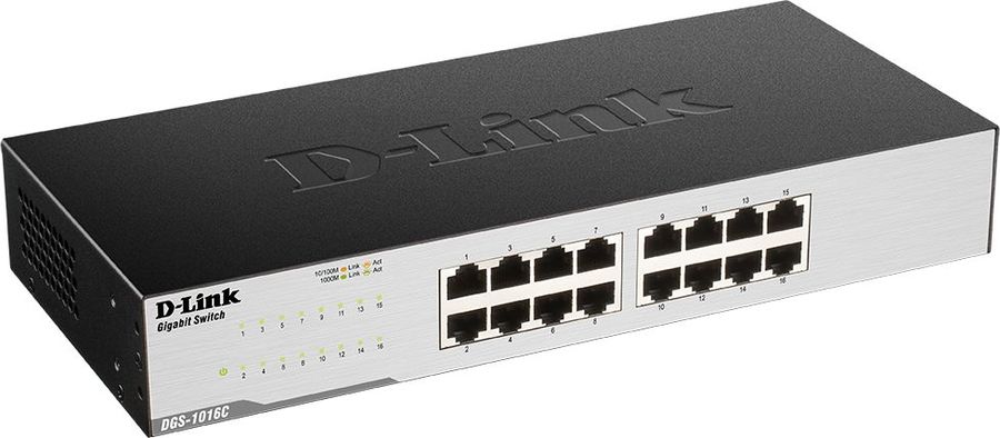 Коммутатор dl-dgs-1016cb1adi1a d-link В наличии Неуправляемый гигабитный коммутатор DGS-1016A с 16 портами является выгодным решением для сетей SOHO и сектора SMB.